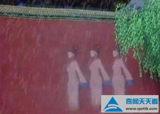 在1992年某一天,天上打雷之时故宫墙壁上出现了宫女。当时在场许多游客都看的目瞪口呆,这还是头一次见到如此场景,难道是宫女们穿越了。原来之所以会出现这样景象,是因为红色宫墙含有四氧化三铁,在打雷时宫女刚好经过于是被录下来宫女影子。