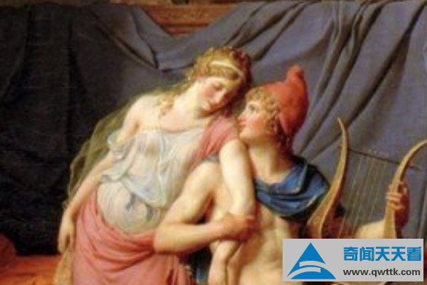 《帕里斯和海伦之爱》绘画的是帕里斯和海伦之间的缠绵,其实关于这幅画有一个故事,在西方神话中,帕里斯是特洛伊的王子,海伦为斯巴达国王的王后,而见到海伦的第一眼帕里斯就被她迷住了,然后帕里斯带走了海伦,这导致了一场战争的出现,就是特洛伊之战。
