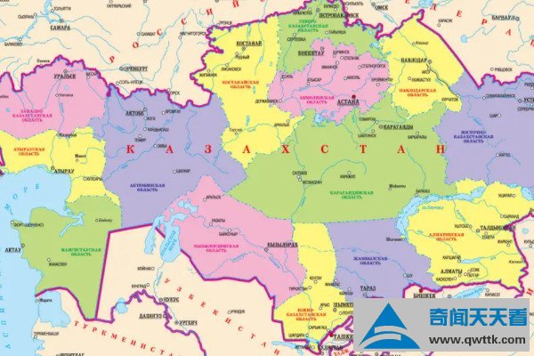 哈萨克斯坦位于亚洲中部,北部与俄罗斯相邻,南部与乌兹别克斯坦、土库曼斯坦、吉尔吉斯斯坦接壤,西部濒临里海,东接中国,其领土范围横跨亚欧两洲,以乌拉尔河作为界限,国境线总长度超过1.05万千米,东南端是天山山系,最高峰别斯巴坎峰的海拔达到4464米。