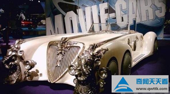 在这部电影中,印度船长有着先进的科技,善于打造精密的武器和机械,并且都非常的漂亮,这车只是他的代步工具而已,这辆车是专门为这部电影设计的,确实世界仅此一辆,但是是白色的,再细看看这张流传许久的照片,黄金跑车后面的布景板上写着电影车。