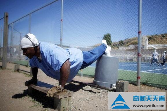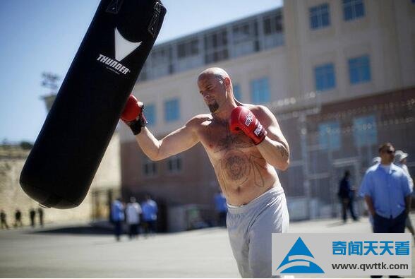 犯人们可以在狱警的监督下,在合适的时间选他们所喜爱的运动来进行身体锻炼,调节自己的情绪等。这名犯人正在室外练习自己喜爱的搏击运动,以此来发泄他在监狱的一切不愉快和暴躁的心情,不过要是这么锻炼下去他并不能改正,出狱后是不是会变得更加暴戾呢...