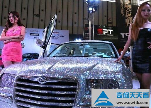 还有一个就是在国内,是一位极端的富二代的车,这辆钻石跑车,来自美国第三大汽车公司的克莱斯勒300C,了一款粉色的兰博基尼大牛,被一车的粉钻给布满了,加上非常犀利的剪刀门,紫色的前LED光源,给予了该车非同一般的既视感在去年的成都车展上,据了解克莱斯勒300C全车布满了细致的多达12万颗粒的钻石。