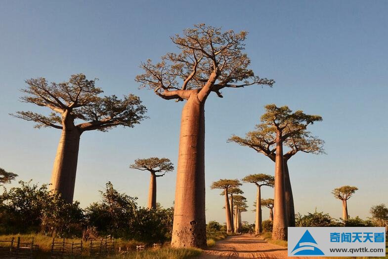 猴面包树是地球上古老而独特的树种之一,它的高度可以达到25米以上,树干巨大的猴面包树需要40个人手拉手才能够围绕一圈。