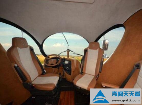 另外设计出一种和其它房车与众不同的设置,可以像飞机引擎一样的螺旋雨刮器,还有360度随意旋转的驾驶座椅。有些设备真实超乎你的想象。在车子外侧面装备了一个户外烧烤架,同时配备了一个像飞机一样的自动旋梯。