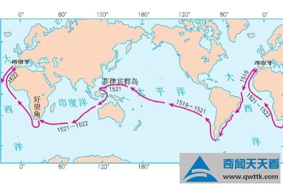 5、在1521年3月16日,麦哲伦一行来到一个无人居住岛上。之后因插手附近各个小岛内讧,最终麦哲伦死于这场战乱之中。在他死后其同伴们继续进行航行,最终在1522年绕过非洲南端好望角,抵达西拔牙。