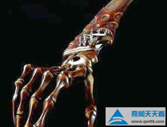鬼手这把刀来源十四世纪意大利一个疯狂铁匠铸造的,当时在铸造的时候将自己妻子右手砍下并做成刀柄,之后又将儿子肋骨做成刀刃,最后将自己小腿骨做成刀柄。在完成这个刀后将其献给债主,这位债主在得到刀后将全家人都烧死了。在传闻上只要得到这种刀,就会全家死光。