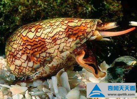 芋螺是一种生活在暖还软体动物,我们在珊瑚礁、沙滩上经常看到它活动。它外表色彩斑斓,十分美丽。可是在美丽外表上藏着一颗有毒心,它体内含有剧毒物质,从毒牙中释放出毒素,这些毒素足以杀死一个成年人。