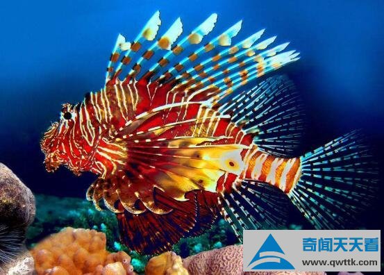 蓑鲉主要生活在温带靠海岸的岩礁或珊瑚礁内,最大特点就是观赏,体表色彩鲜艳美丽,体长20-30厘米。大家在观赏时候一定要注意,切记不可触摸它,因为它是一种有毒鱼,遇到危险时背部尖刺释放出来毒液,一旦中毒就会导致昏厥现象,但是不足以致命。