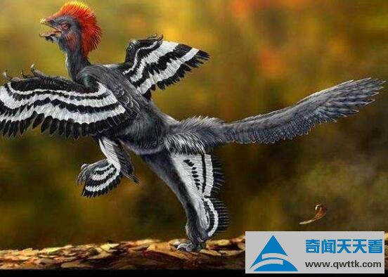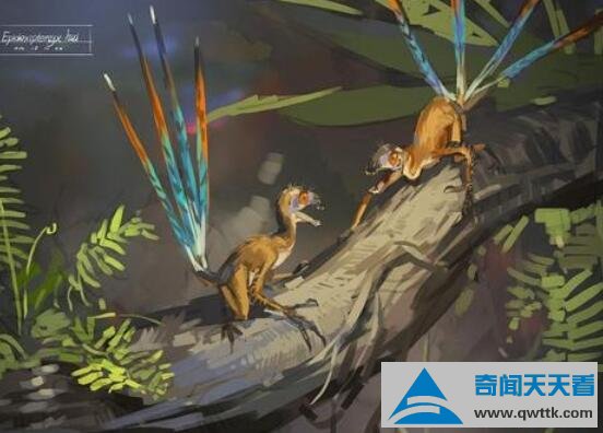 这种恐龙体型是擅攀鸟一倍有余,体长为40厘米,生长有四枚20厘米羽翼。颜色靓丽,不过无法飞行,可能是炫耀展示自己的美。它生存年代为侏罗纪中期或晚期1亿6800万到1亿5200万年前,目前只发现了唯一一块化石,地理位置在我国内蒙古宁城县的道虎沟化石层中。