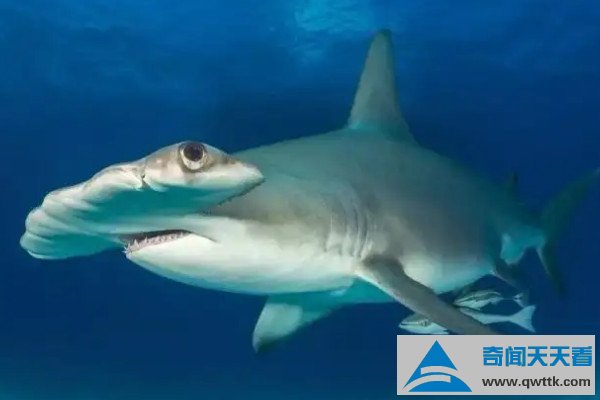 双髻鲨因为特殊的头部形状而得名,双髻鲨的头部左右都有凸起,并且上面各有一只眼睛和鼻孔,两眼间距为1米,据研究分析,这样的构造,对观察四周环境,能起到非常好的效果,通过来回摇摆头部,能够探测到360度范围内的情况。