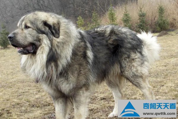 高加索犬是现存体型最大的犬种,有着犬中之王的美誉,据悉成年后的高加索犬体重可达70千克以上,从外观上就给人一种生人勿近的感觉,其头盖骨宽阔,骨骼发达,具有极强的运动能力和护主能力,身形强健且肌肉发达,尾部毛发比较浓密,位置也非常高,注意该犬寿命长达12-14年。