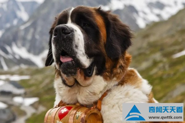 圣伯纳犬是瑞士的国宝动物,为犬科犬属动物,最初由瑞士阿尔卑斯山区圣伯纳修道院的僧侣用獒犬类杂交而成,后期因作为山地救援犬而被大众喜爱,而且圣伯纳犬体重约为100千克,身高在1米左右,是现存体型中最大的犬品种之一,不过该犬的性格稳重、富有爱心,是常见的家庭伴侣犬。