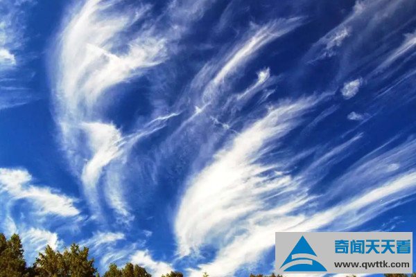 卷层云由冰颗粒形成,看上去像白云的纹路,这些是唯一会在太阳或月亮周围产生光晕的云层,如果卷层云扩展,意味着天气晴朗;若是卷层云缩小,意味着将要下雨。