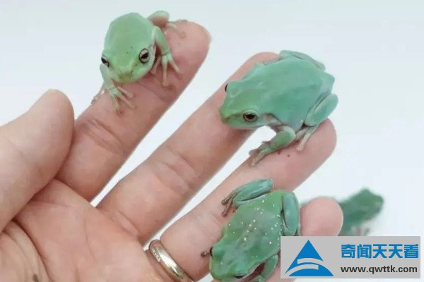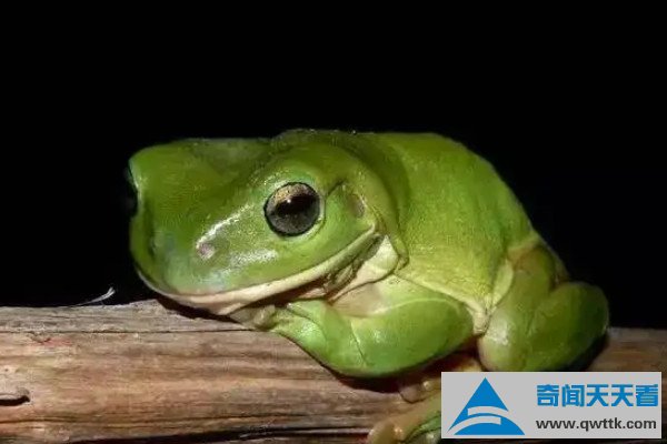 老爷树蛙的学名叫绿雨滨蛙,是雨滨蛙属中体型较大的树蛙,也是最肥大的树蛙种类,而大多树蛙都含有毒素,老爷树蛙也不例外,不过它们的毒素比较微弱,不会对人体造成危害,反而能分泌出可以破坏艾滋病原体的缩氨酸成分,具有一定的科学价值。
