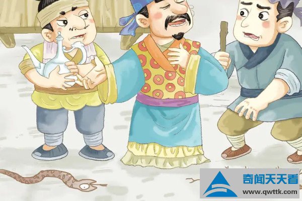 楚国有个祭祀的人,他赏赐给前来拜访的门客一壶酒。门客们相互说到:“大家一起喝这壶酒是不够喝的,一个人喝还能有剩余。请大家在地上画蛇,先画好的人喝酒。”一个人先把蛇画完了,拿起酒壶准备喝酒,于是左手拿着酒壶,右手画蛇说道:“我可以为它画脚。”