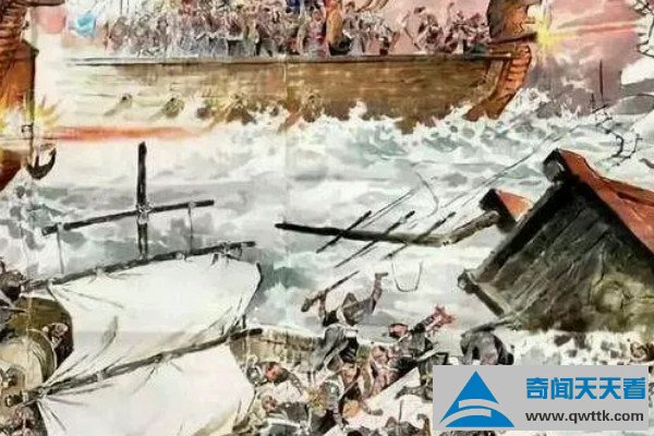 后来两军激战数日,宋军损失惨重,并未打破元军的封锁。元军就找准时机从四个方向发起突袭,他们用帆布遮蔽船只,在大雾天气的掩护下出现在宋军前面,宋军无力抵抗,阵脚大乱。陆秀夫看见宋军无法突破,就背着赵昺投海自尽。《宋史》中记载,七天后海上有十多万具尸体浮起。