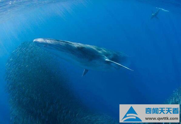 布氏鲸,背部深灰色,腹面黄白色,平均长度在12米左右,曾有摄影师捕捉到极为罕见的一幕,墨西哥拉巴斯海岸的科特兹海拍摄到一只成年的布氏鲸跃出水面,看上去就像是一条巨大的鳗鱼在空中飞行。