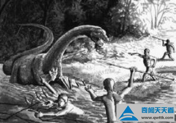 但刚果恐龙存在的唯一证据是1981年拍摄的一张恐龙照片,这是一只探险队在雨季快结束时,乘船进入河流深处拍摄的,据他们说这头恐龙个头很大,长尾巴,头就像蛇一样,这可能就是地球上还有活着的恐龙之一吧。