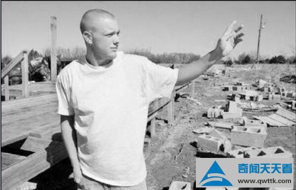 接着整个拖车也被龙卷风巨大的力量摧毁,一盏灯落下重重地砸在麦特头上,将他砸晕了过去。随后,只穿了一条拳击短裤的麦特就身不由己地被龙卷风“吸”到了空中!当时的龙卷风时速高达24万米。麦特在狂风中翻滚着,几秒钟之后,他就被卷到200米之外...