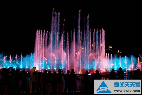 迪拜音乐喷泉是世界上最大的喷泉,非常的壮观,喷射出的水柱有上千种变化,喷泉的灯光,能够在20英里的任何地方看见,可以说是中东地区的焦点。