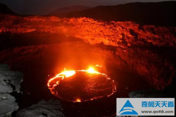 尔塔阿雷火山位于埃塞俄比亚东北部的阿尔法地区,是地球上最干燥、最低洼的地区之一,这里的岩浆非常活跃,就像湖水一样把这里包围,常年保持这种罕见的景象,人来无法踏足。