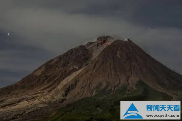 锡纳朋火山位于印度尼西亚北苏门答纳岛,近年来,它一直处于极不稳定的状态,苏醒后开始猛烈爆发,已经造成数人死亡,喷出的火山灰可高达4500米,非常致命。
