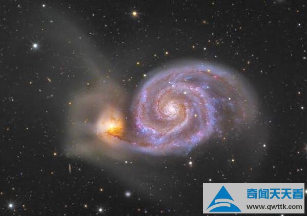 涡状星系位于猎犬座的螺旋星系,梅西叶编号为 M51,亦称为 NGC5194,距离我们约三千三百万光年。